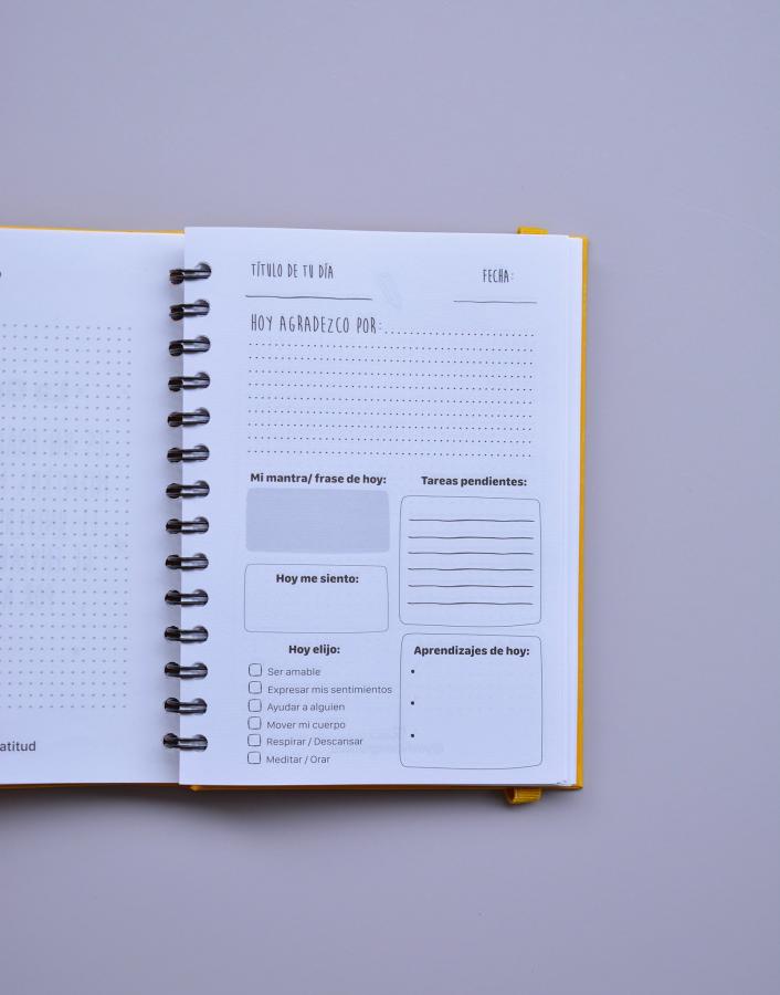 Tiene 20 actividades prácticas, 12 frases inspiradoras y un diario de 2 meses donde podrás anotar todas esas bendiciones diarias y agradecer por ellas. Es una herramienta muy útil que te ayudará a cultivar el hábito de la gratitud en tu vida, recibiendo así todos sus poderosos beneficios. Hecho con productos Reciclables y amigables con el planeta. Beneficios de la gratitud: - Ayuda a mejorar tu calidad de vida - Aumenta tu energía vital - Te conecta con la vida - Te ayuda a enfrentar momentos de Estrés - Mejora tu salud física y mental - Eleva tu autoestima, confianza y seguridad - Te conecta con el presente.