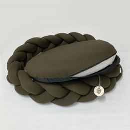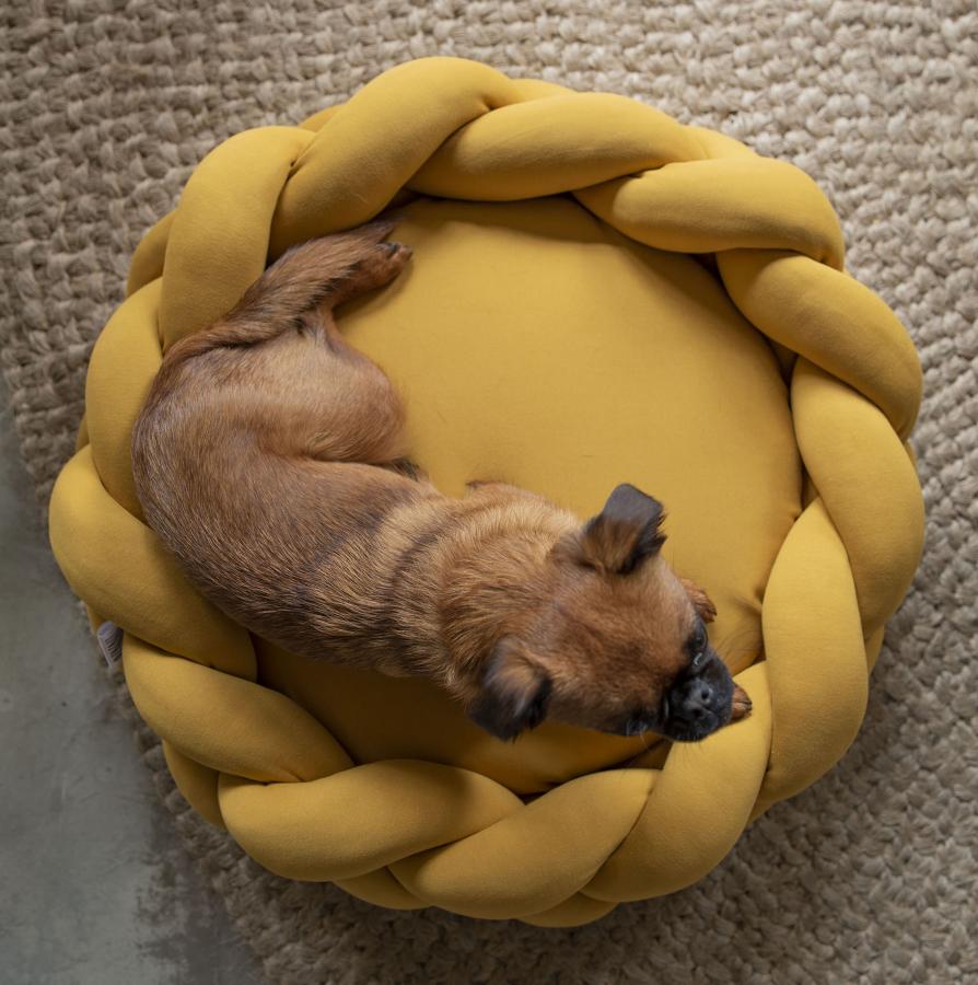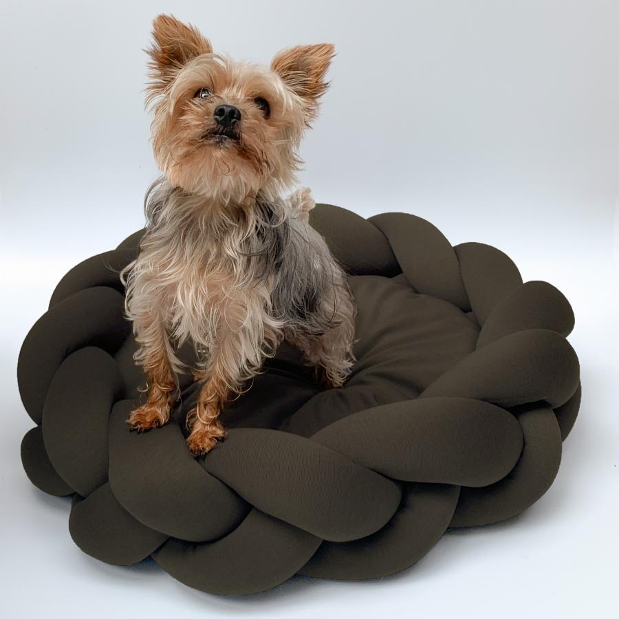 La cama trenza Binni está diseñada para gatos y perritos tamaño Mini hasta medianos como: Talla S diametro de 60 cm (Chiwawa, Pug, Boston Terrier, gatos) Talla M diametro de 70 cm (Bull Dog Frances, Beagle, Cocker Spaniel, Jack Russell Terrier) Talla M de 70X90 cm ( Border Collie, Pastor Australiano) Está fabricada en una tela elástica gruesa, rellena de algodón siliconado y el cojin central es relleno de espuma para cuidar su postura al descansar. Para la limpieza solo retiras el forro de cojín para lavar, y este junto con la trenza pueden ir a la lavadora en un ciclo suave.