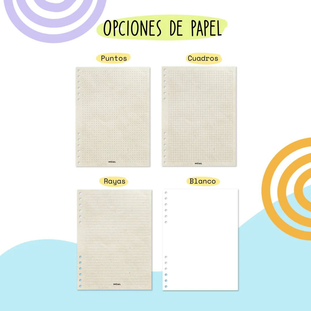 Recuerda llevar tu recarga de hojas para que reutilices las pastas una y otra vez.