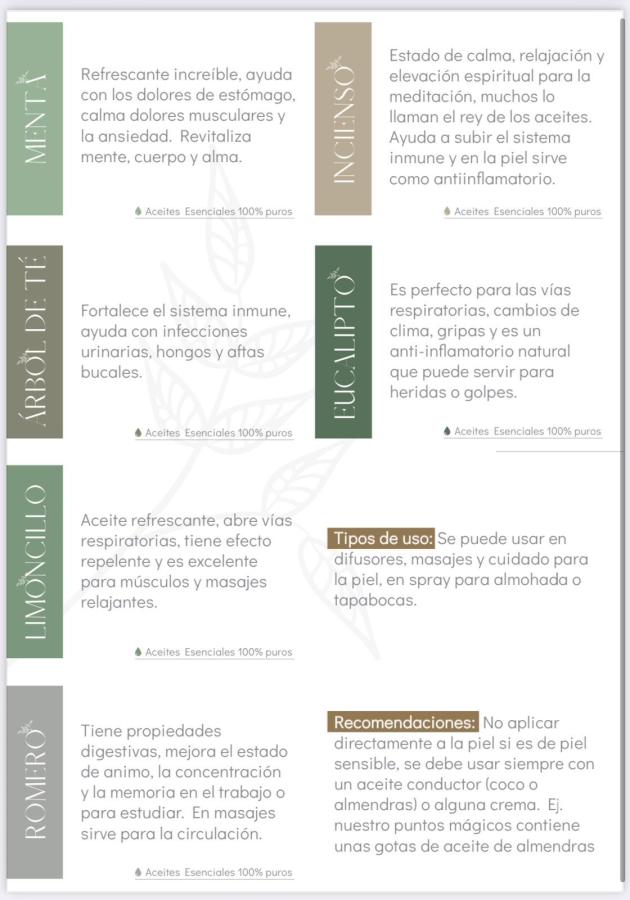 La fragancia que emana de unas gotas de los aceites esenciales revitalizará tus espacios, cuerpo, mente y alma. Aceite esencial 100% puro derivado de las plantas, sin aditivos, rellenos, bases o portadores añadidos.