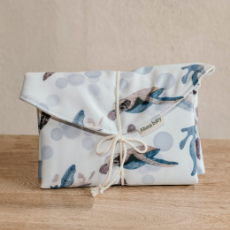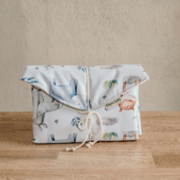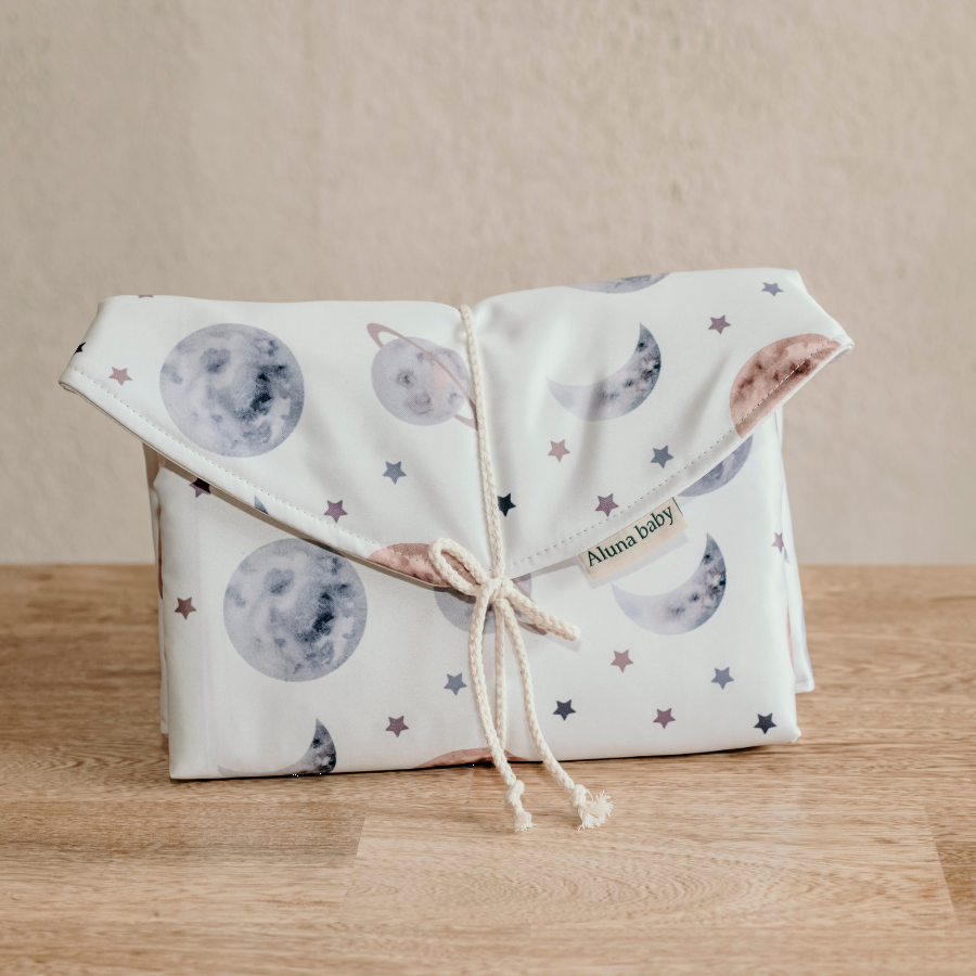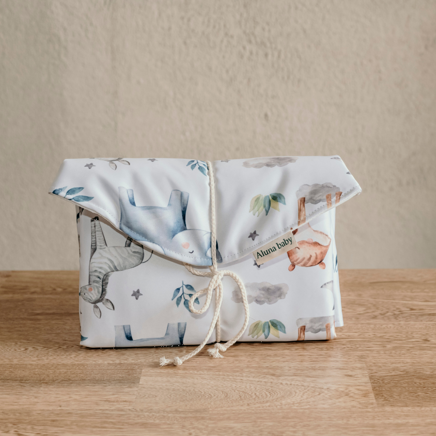 En nuestro cambiador portátil encontraras todo el apoyo de higiene necesario para las necesidades fisiológicas de tu bebé que dan inicio desde su nacimiento. Lo hemos elaborado con versatilidad y facilismo para el momento de su uso que normalmente sucede de una manera espontanea y al azar o en cualquier momento. Composición: Tela estampada Semipermeable / Interior tela algodón impermeable Medidas: 75cm x 50cm Aproximadamente. Utilidad en uso: 3 Años Aprox