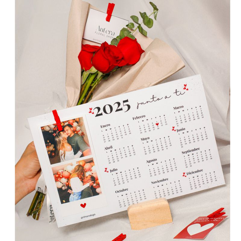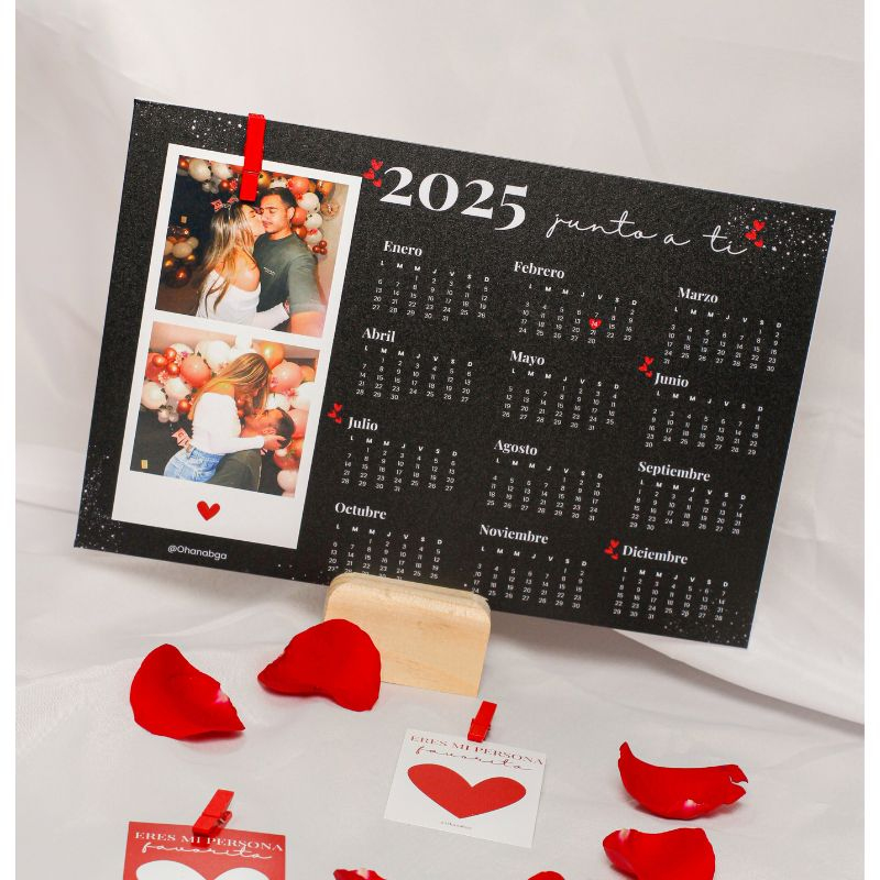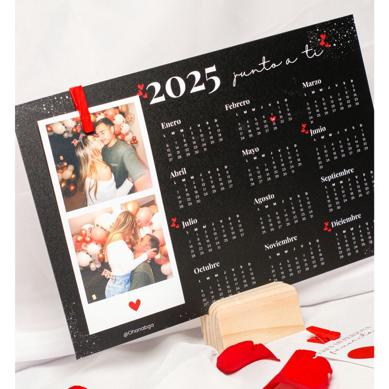 Calendario de 20x25cm en madera MDF de 2mm, con 2 impresas en papel fotográfico de alta calidad.