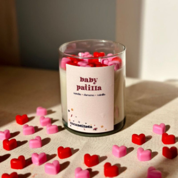 Una vela alegre, fresca y divertida. Baby Patilla combina el aroma dulce y jugoso de la sandía con una decoración de corazones rojos y rosados sobre una base blanca suave. Su fragancia veraniega es ideal para llenar cualquier espacio de vitalidad y optimismo. Perfecta para: ambientar espacios juveniles, regalar en cumpleaños o crear un rincón alegre y lleno de color. Tamaño: 8x10 cm | Contenido: ~240g | Aroma: Sandía